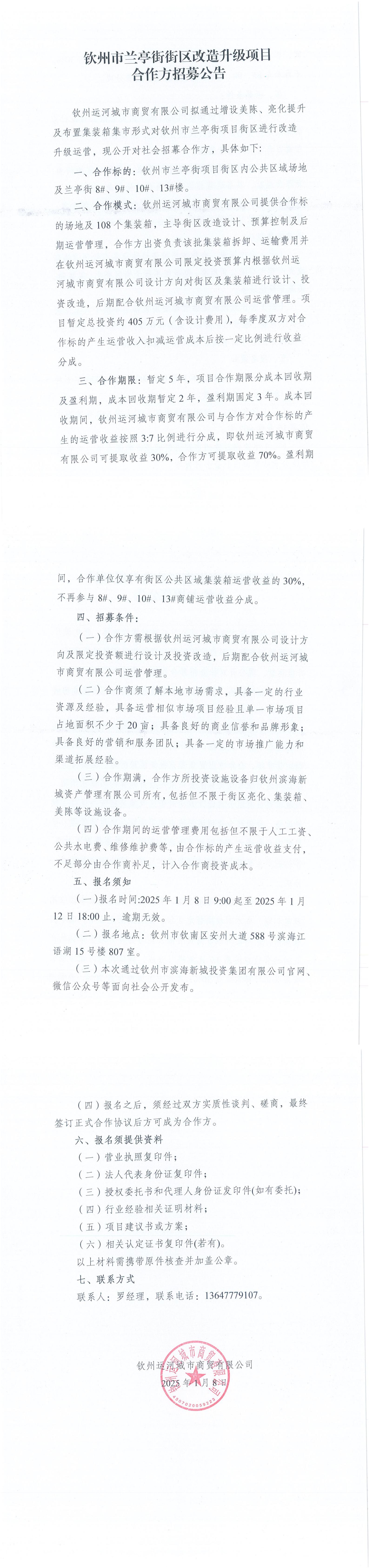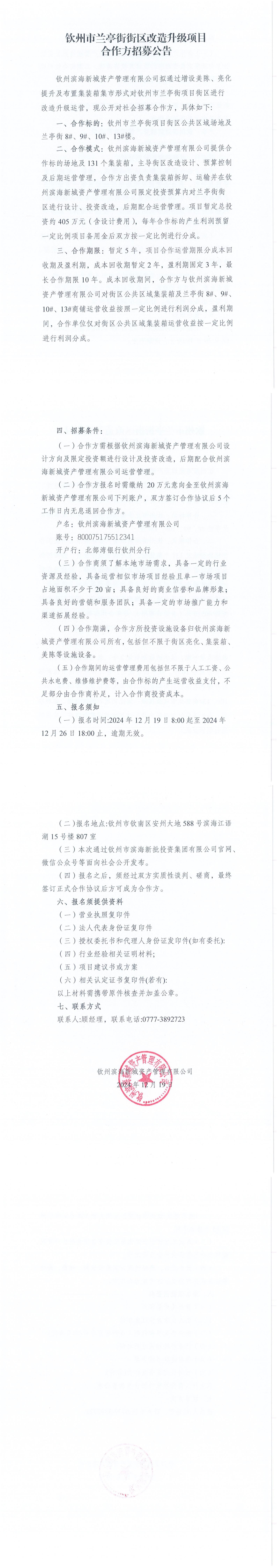 欽州市蘭亭街街區(qū)改造升級(jí)項(xiàng)目合作方招募公告