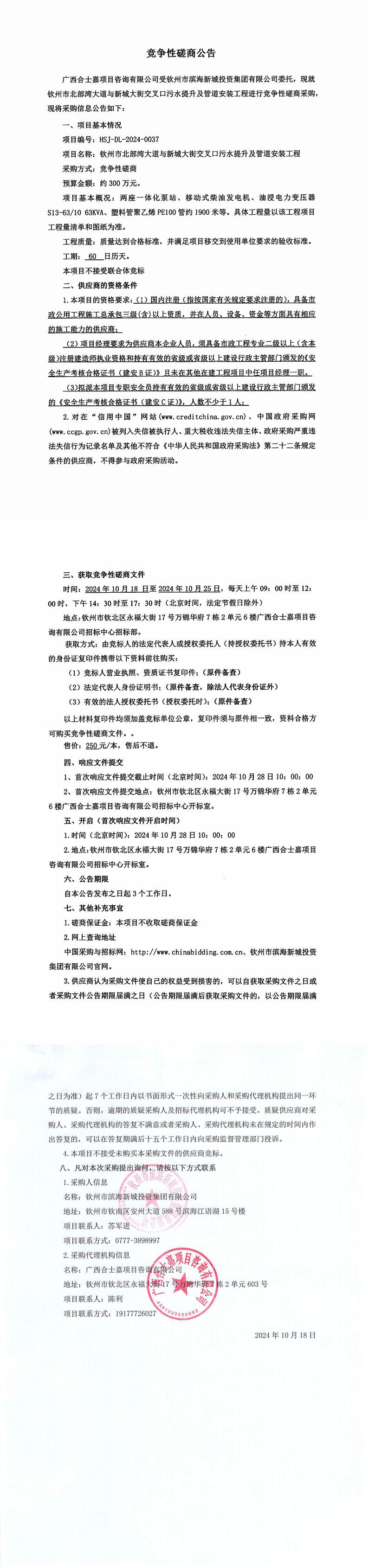 北部灣大道與新城大街交叉口污水提升泵及管道工程招標(biāo)公告