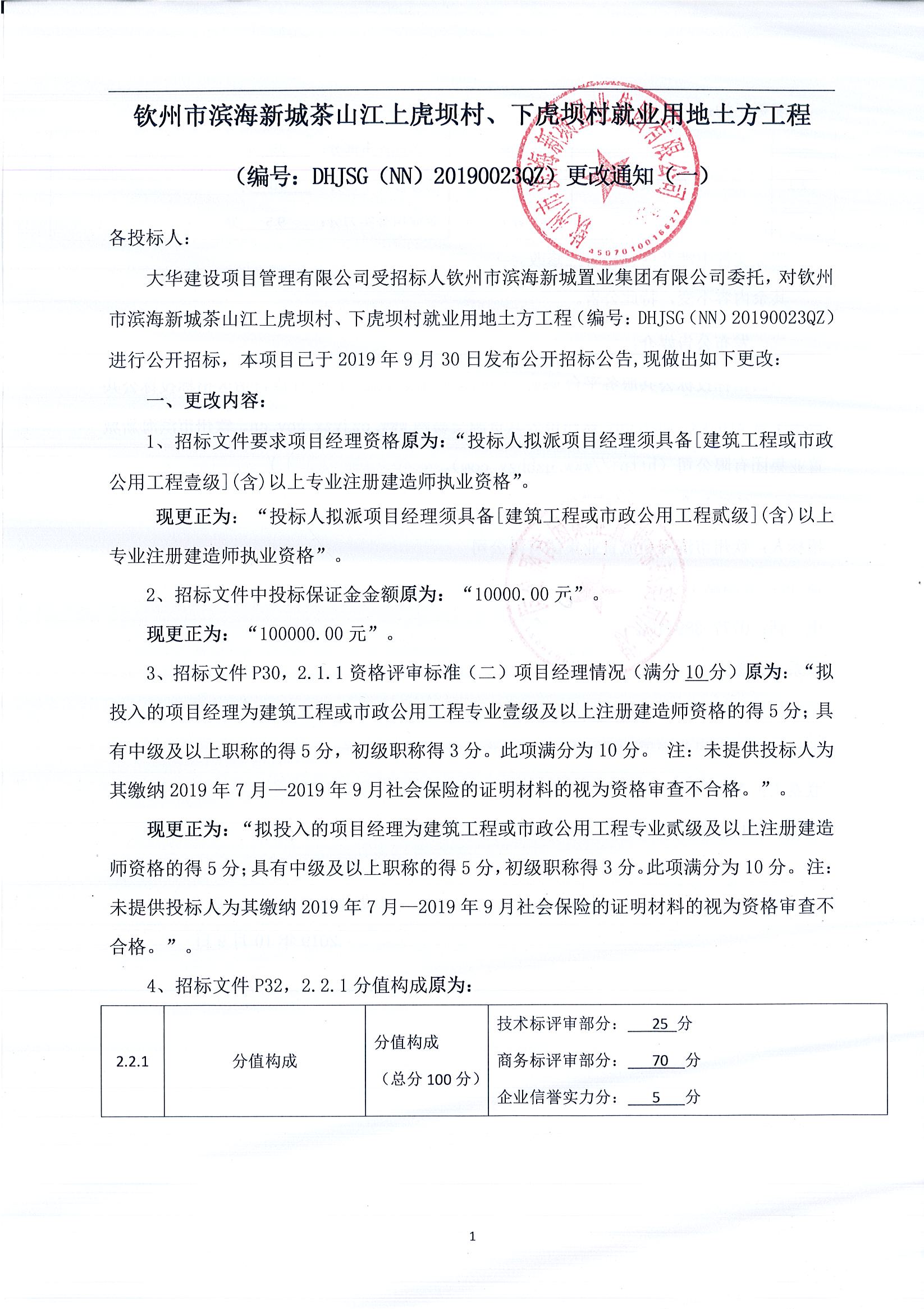 欽州市濱海新城茶山江上虎壩村、下虎壩村就業用地土方工程 (編號:DHJSG(NN)20190023QZ)更改通知(二)