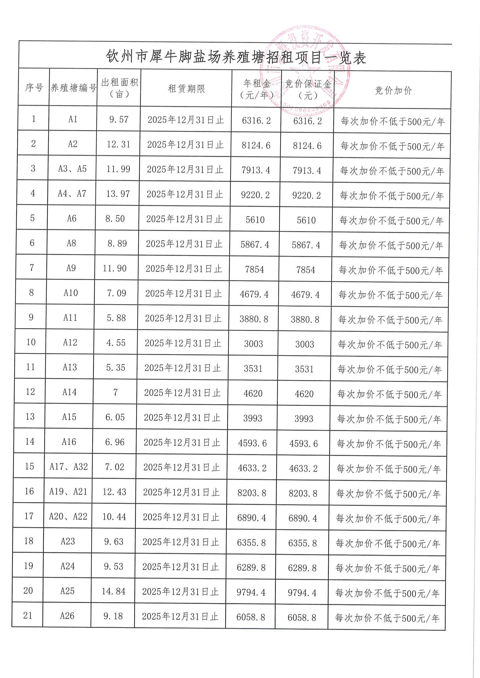 關于犀牛腳鹽場養殖塘公開招租的公告